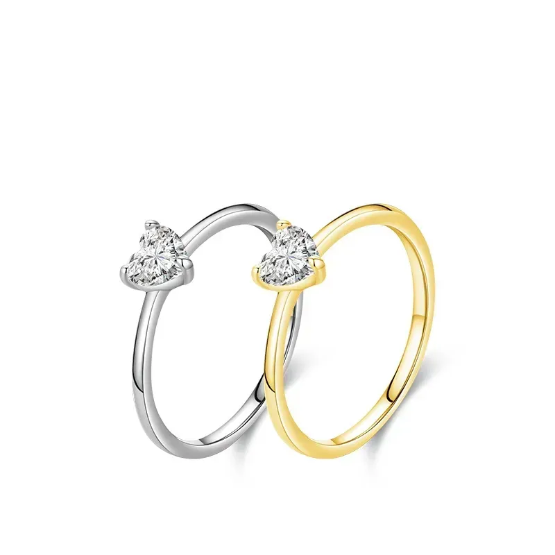 Anillo Fashion Heart | Anillo de Plata 925 + Enchapado de Oro Amarillo de 18k con Zirconia | Talla 5 | Dorado