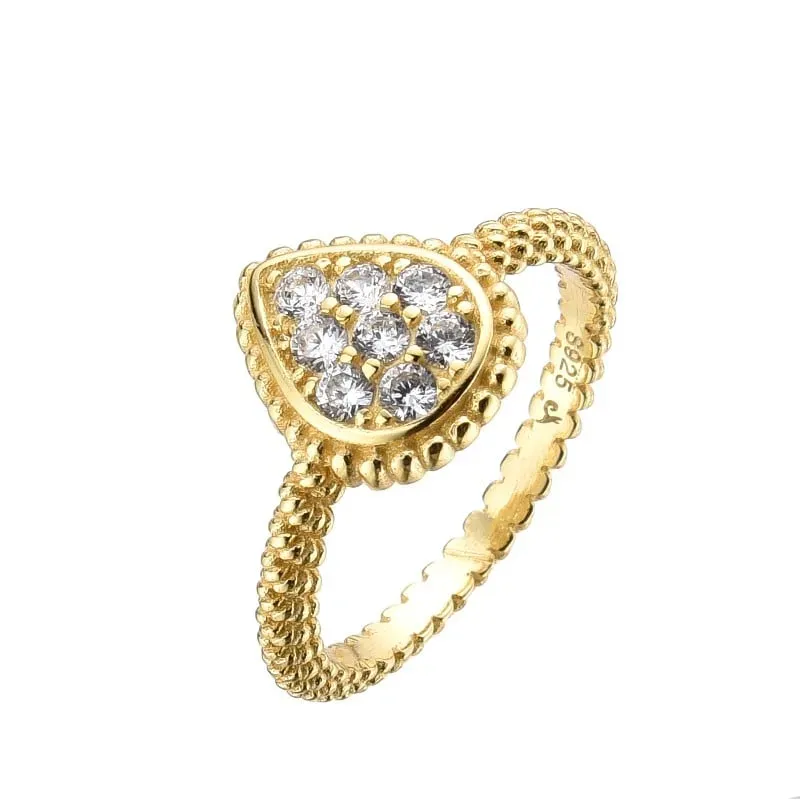 Anillo Majesty | Anillo de Gota de Plata 925 + Baño de Oro de 14k con Zirconias | Dorado | Tallas 5, 8, 9