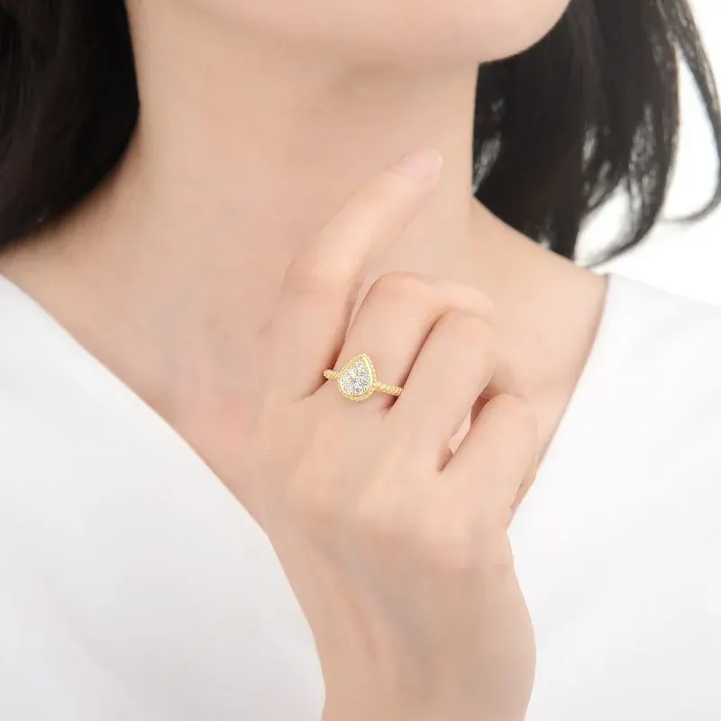 Anillo Majesty | Anillo de Gota de Plata 925 + Baño de Oro de 14k con Zirconias | Dorado | Talla 5, 8, 9